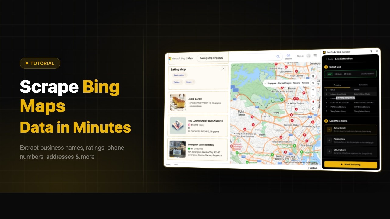 Extract business listings and leads from Bing Maps in seconds. Scrape names, emails, phone numbers, addresses, ratings and reviews. Export to Excel or CSV instantly.