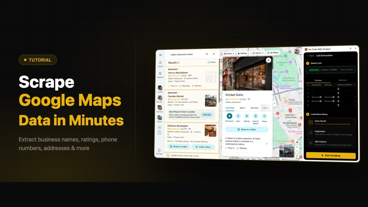 No Code Web Scraper offers a free tier. Install the Chrome extension and start extracting Google Maps data immediately.